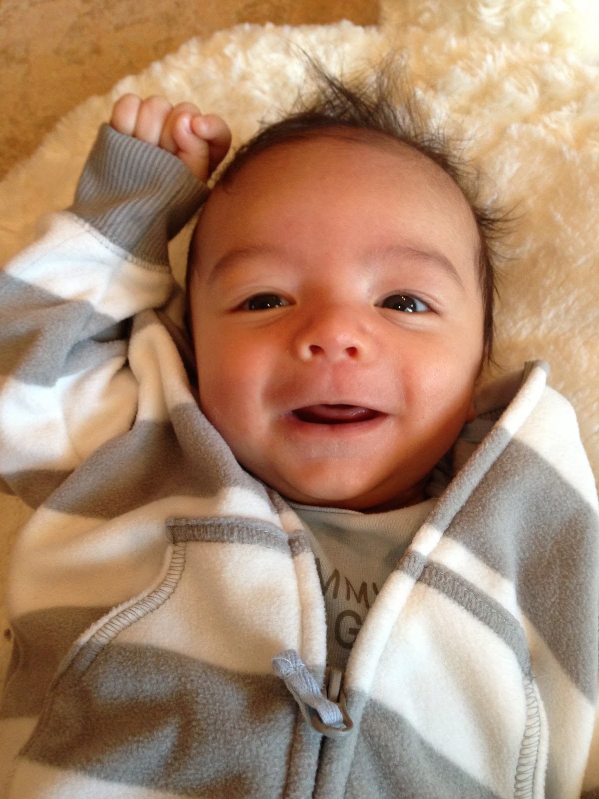 New developments: We moved him over to his crib the week he turned 2 months old (mainly so we could tell his pediatrician that he was a big boy and sleeping in his crib not because we wanted to) but he has been doing SO well in it! This kid is a sleeper and always sleeps about 7-8 1/2 hours a night. Takes after his pops.He is smiling like a machine these days. All you have to do is smile at him and he basically breaks into laughter. Well not laughter yet, but MAJOR smiley man. He can pretty much completely hold up his neck and is obsessed with staring at faces.